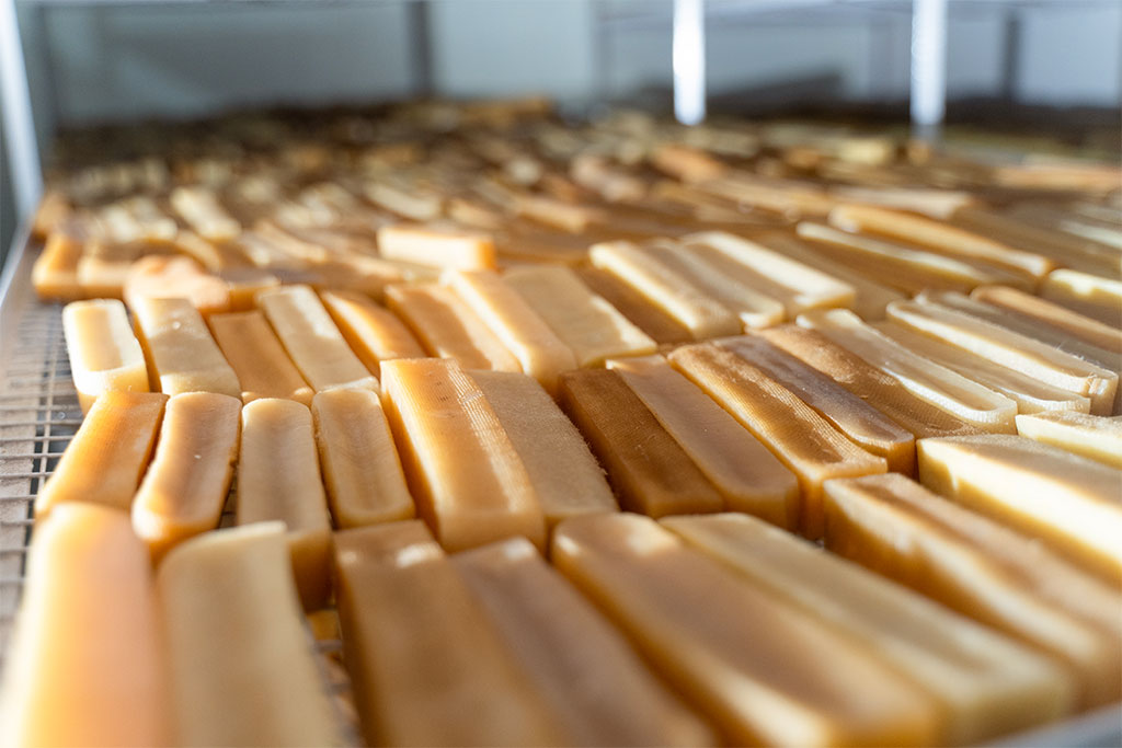 Chhurpi is made from an ancient recipe from the people of the Himalayas in the form of hard cheese. It is made using traditional methods with Yak and cow milk and all-natural ingredients with no preservatives or binding agents. The process of making Chhurpi involves boiling the milk, separating the whey, and then shaping and drying the remaining curd. The resulting hard cheese is then sliced into sticks and let dry and smoke for a month. Chhurpi is an ancient recipe from the Himalayas used as a human dish and later on due to its nutrients and health benefit it has been widely popular among dogs around the world. Chhurpi chews are often considered a natural and healthy alternative to rawhide or synthetic chews. They are generally free from artificial additives and preservatives, chemicals, grain & gluten, lactose, and hormones....